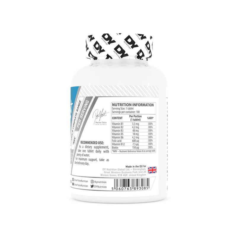 As a dietary supplement, take one tablet daily with plenty of water. Each tablet delivers 78mg of B-Vitamin complex per serving (300% of daily requirement).