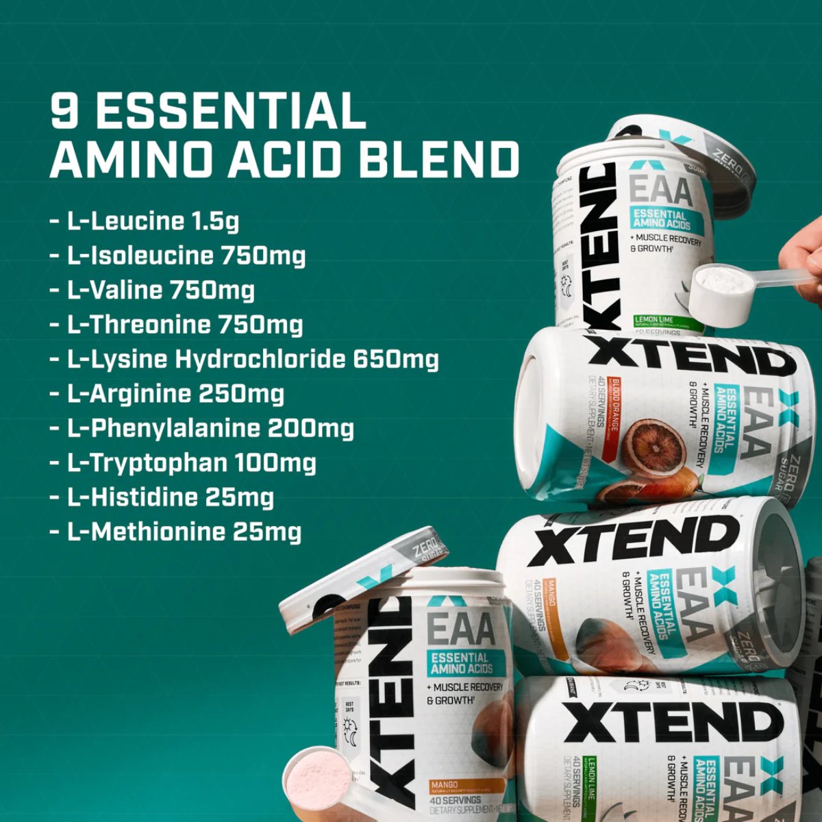 Reach your fitness goals with Xtend EAA (Essential Amino Acids) by Scivation, formulated to support the development and preservation of lean muscle mass. This EAA blend contains all 9 essential amino acids, providing a complete and high-quality protein source necessary for muscle growth and optimal recovery. Whether you're powering through intense training sessions or working to maintain your hard-earned gains, Xtend EAA offers a straightforward, effective solution with zero sugar and a variety of delicious, sugar-free flavours.